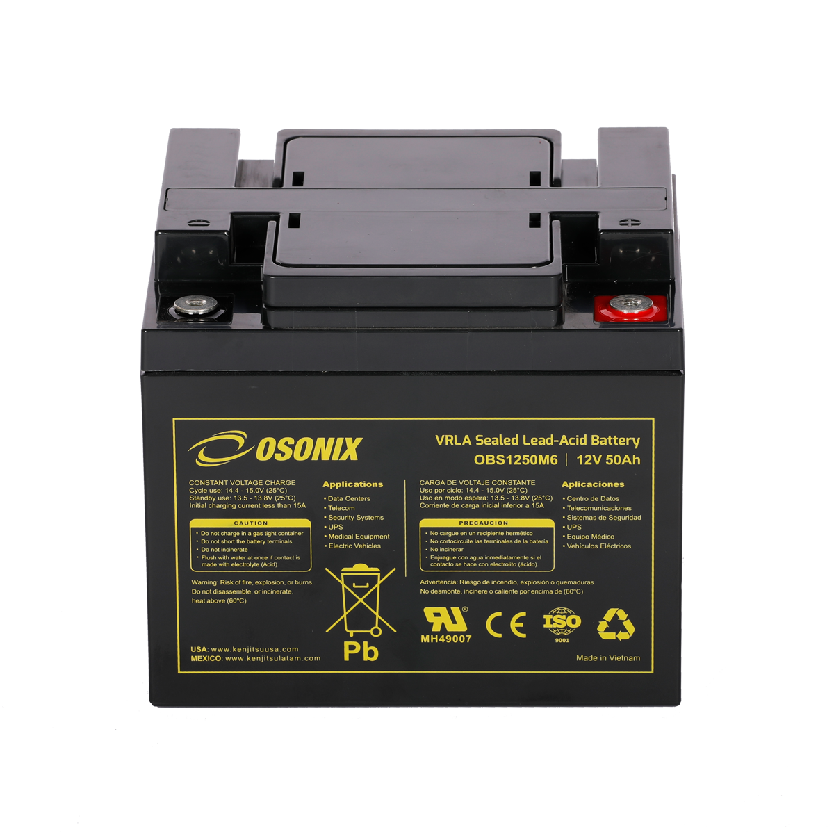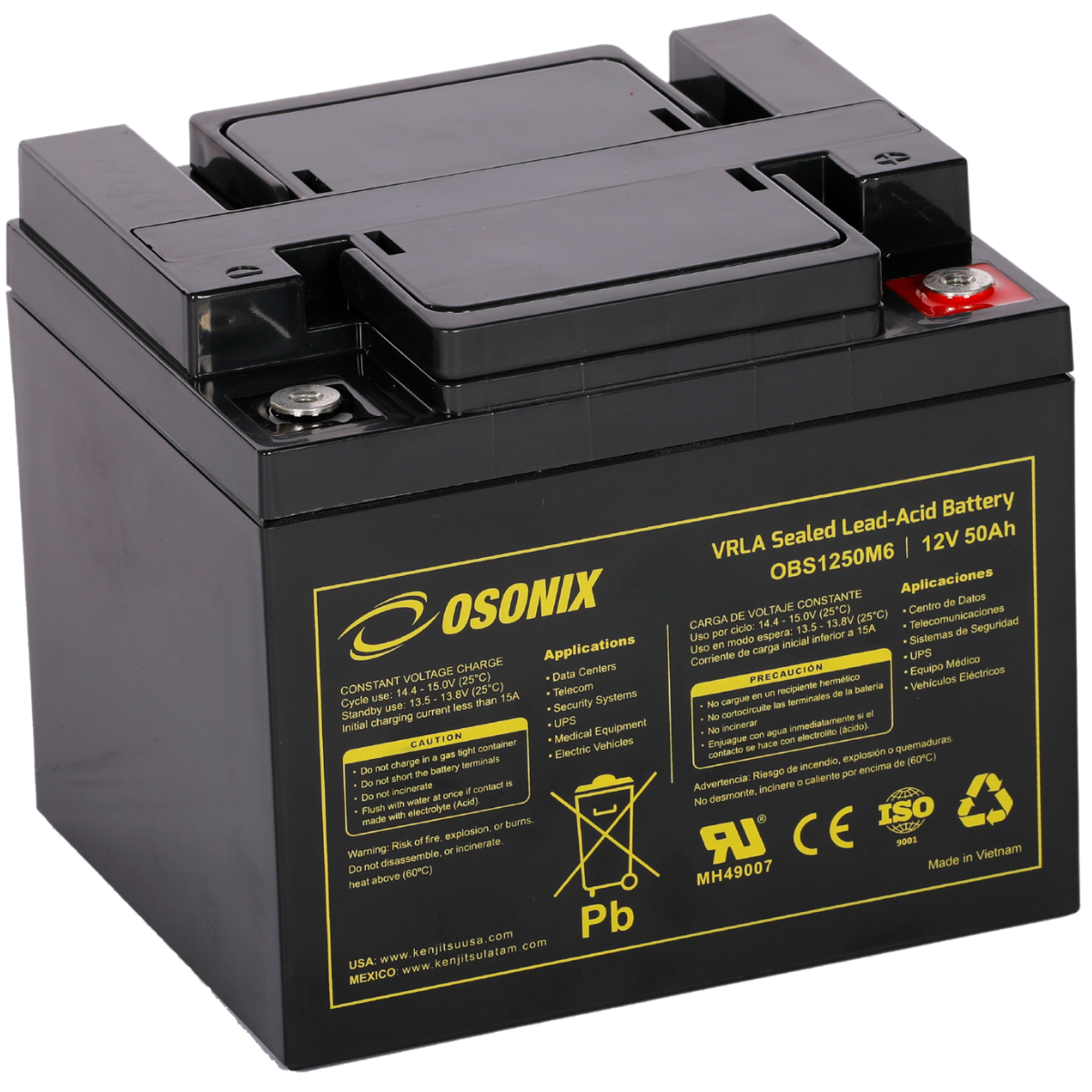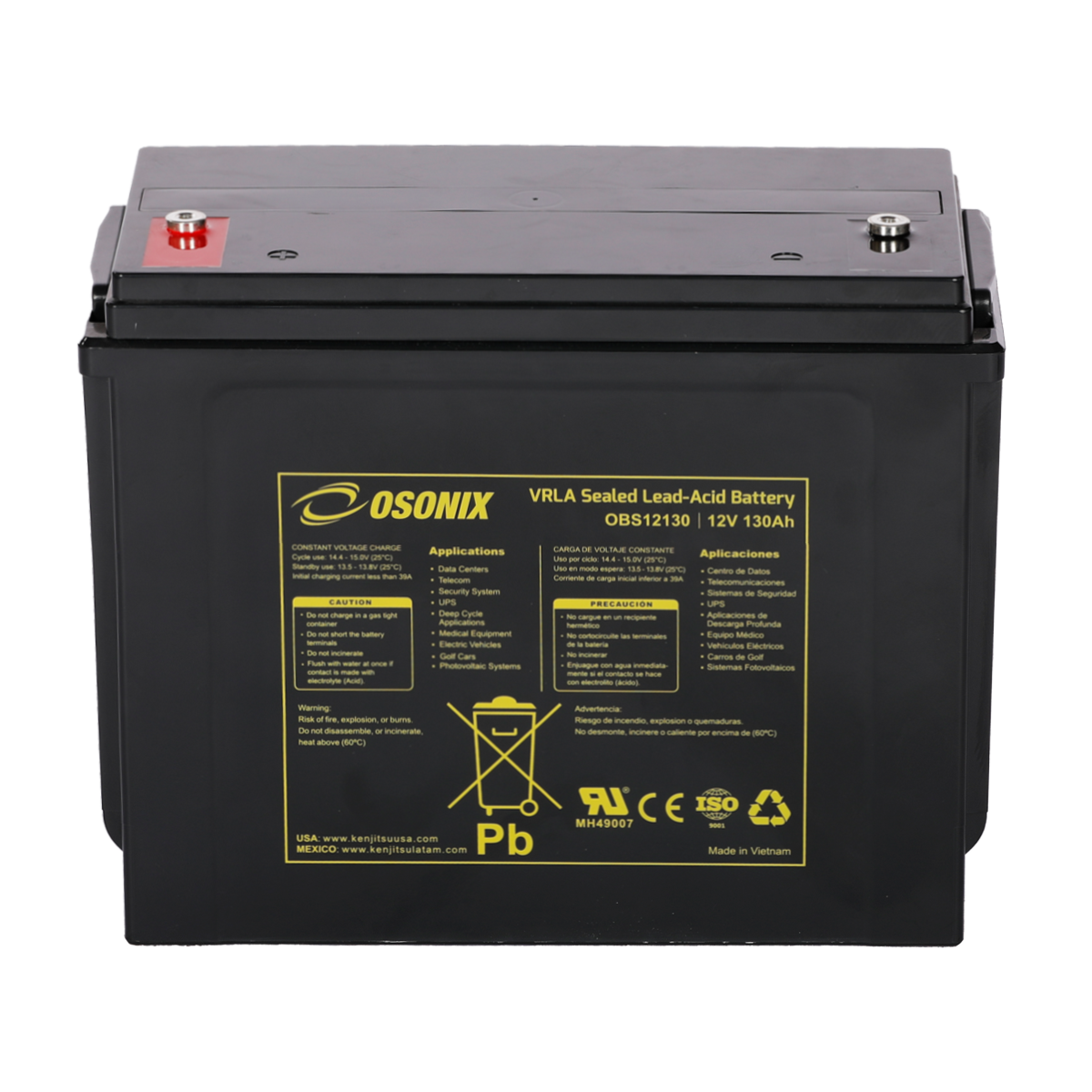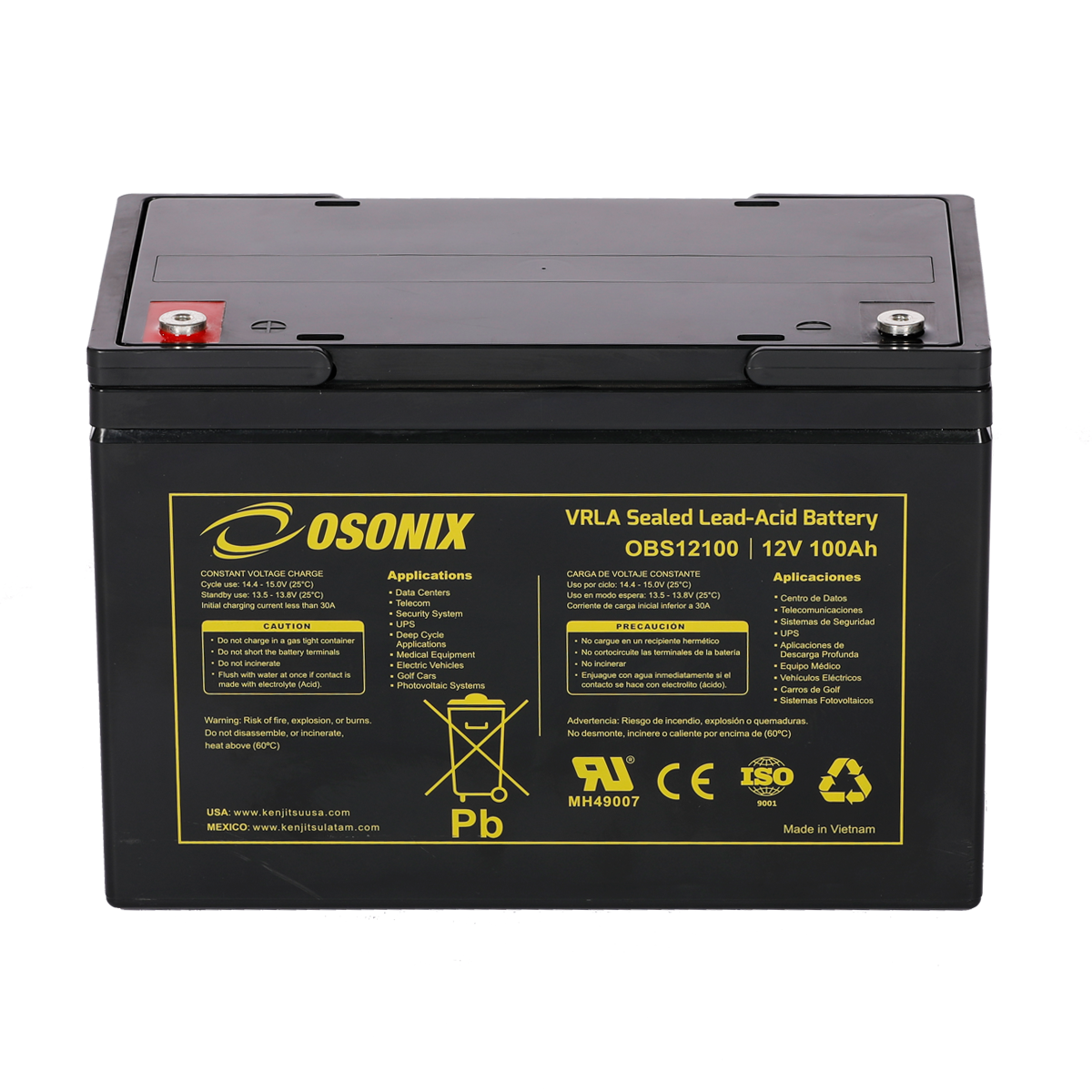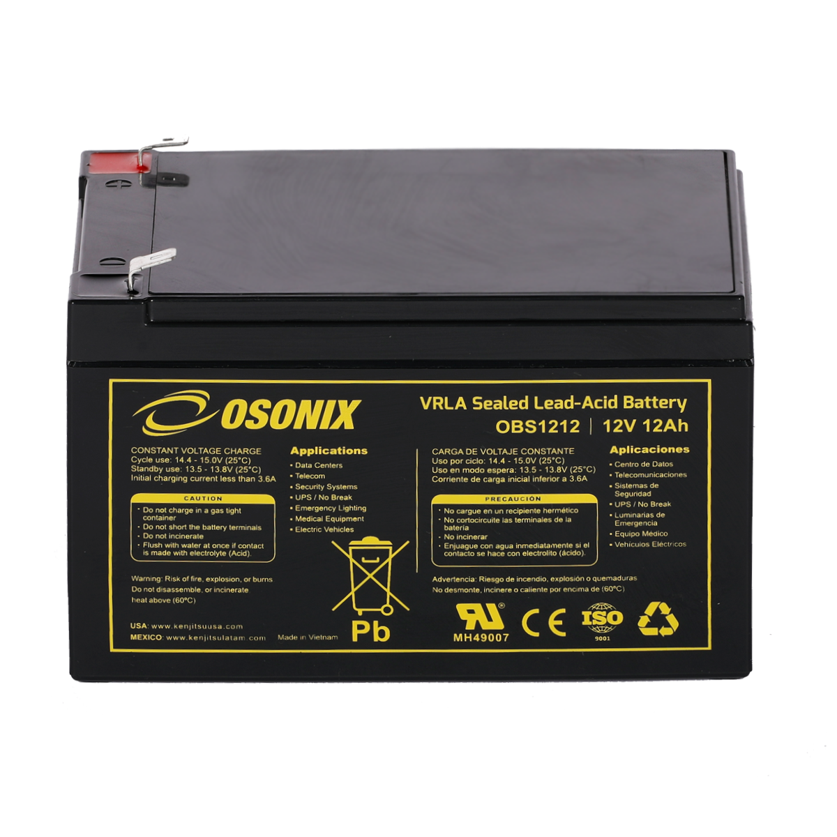 | Voltage (V) | Amp Hour (Ah) | Watts(W) 15min 1.67V/cell | Lenght | Width | Height | Total Height | (Kg) | (Lb) | ||||||