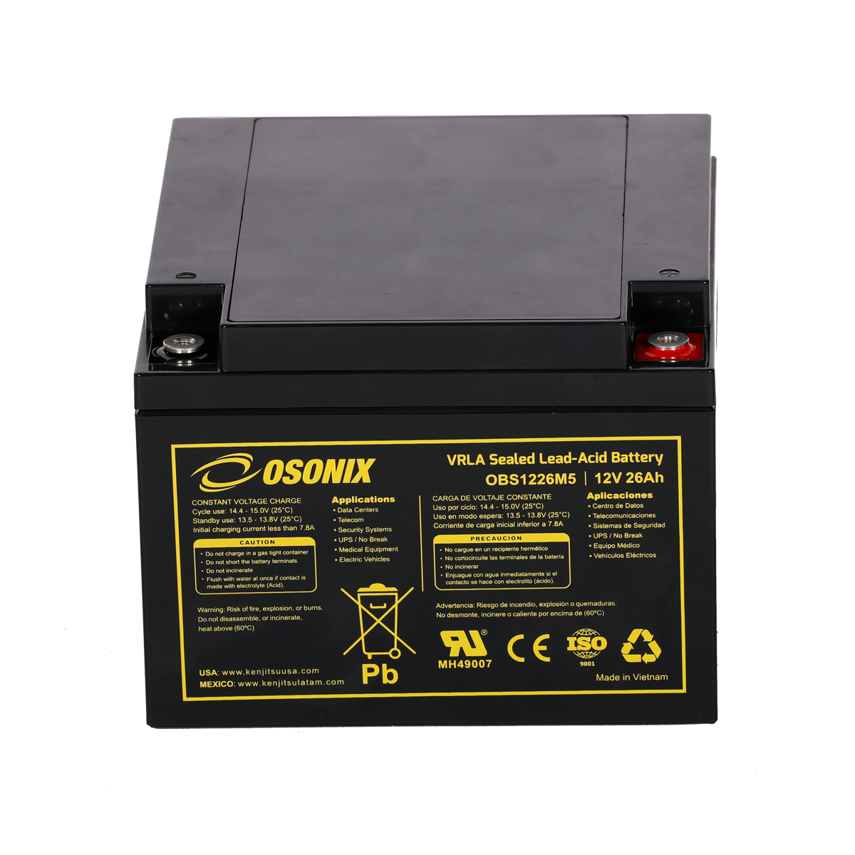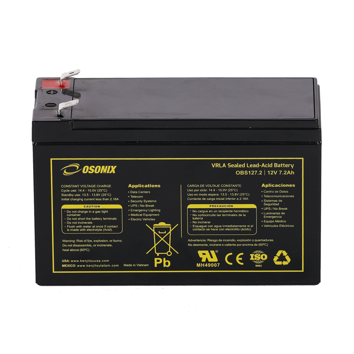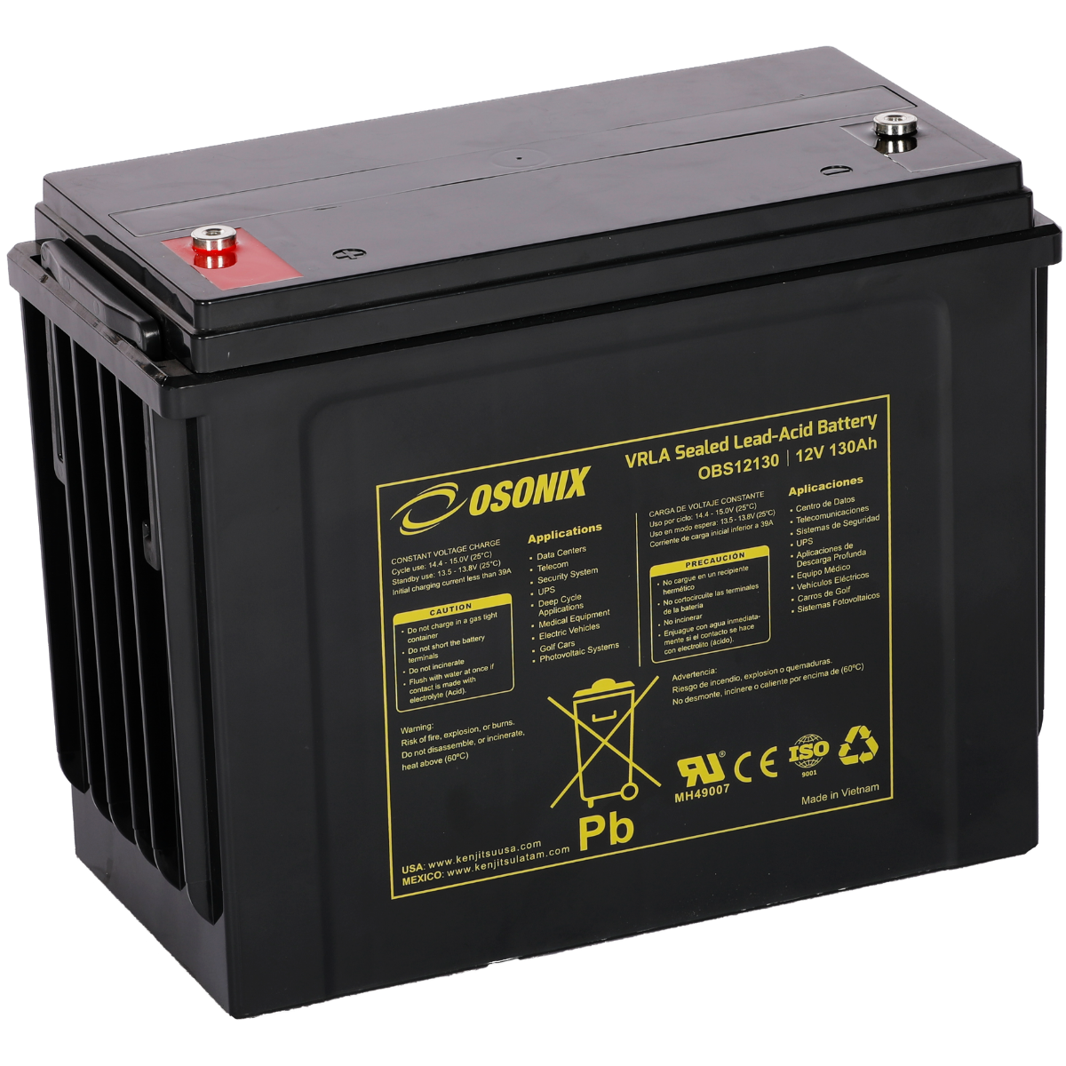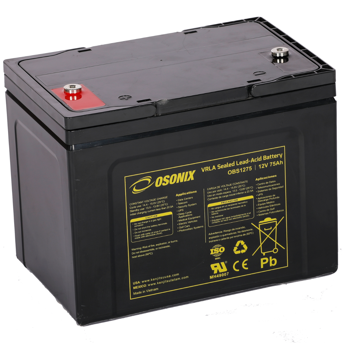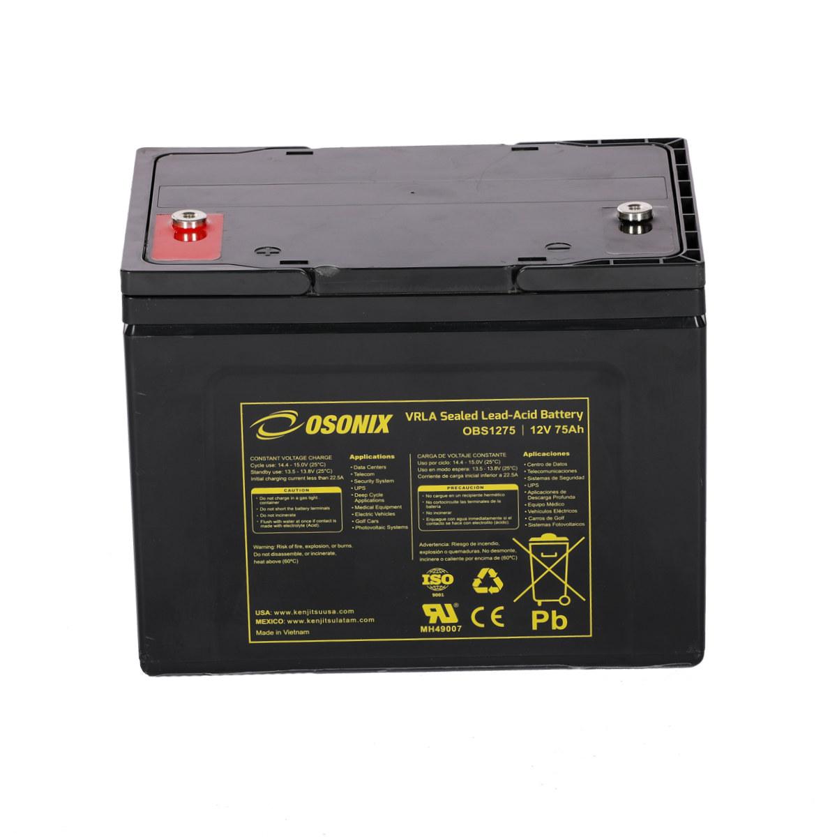 | Voltage (V) | Amp Hour (Ah) | Watts(W) 15min 1.67V/cell | Lenght | Width | Height | Total Height | (Kg) | (Lb) | ||||||