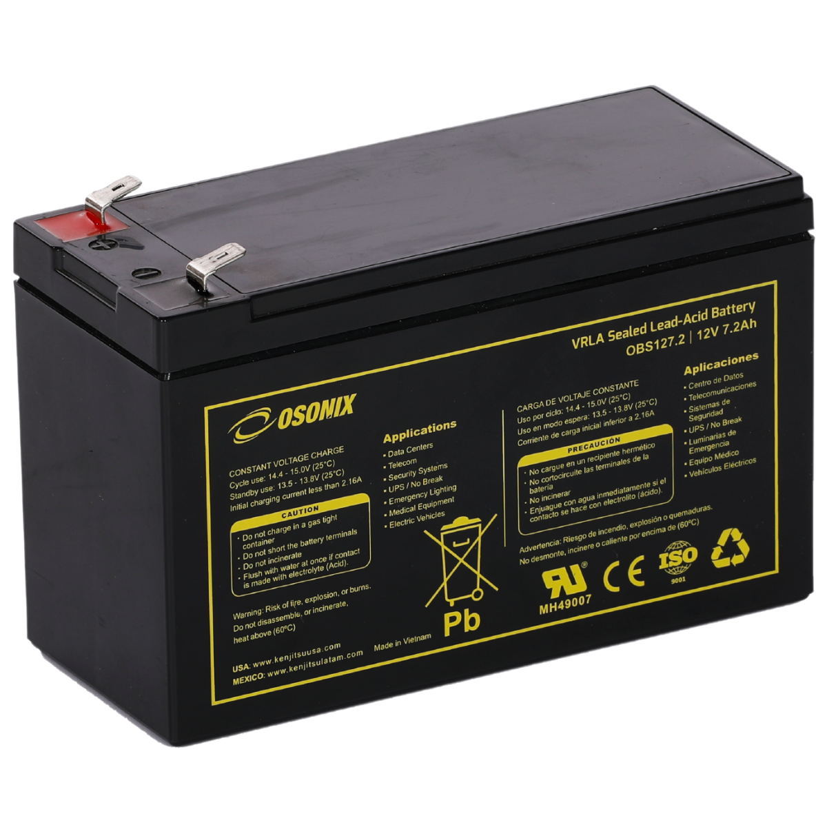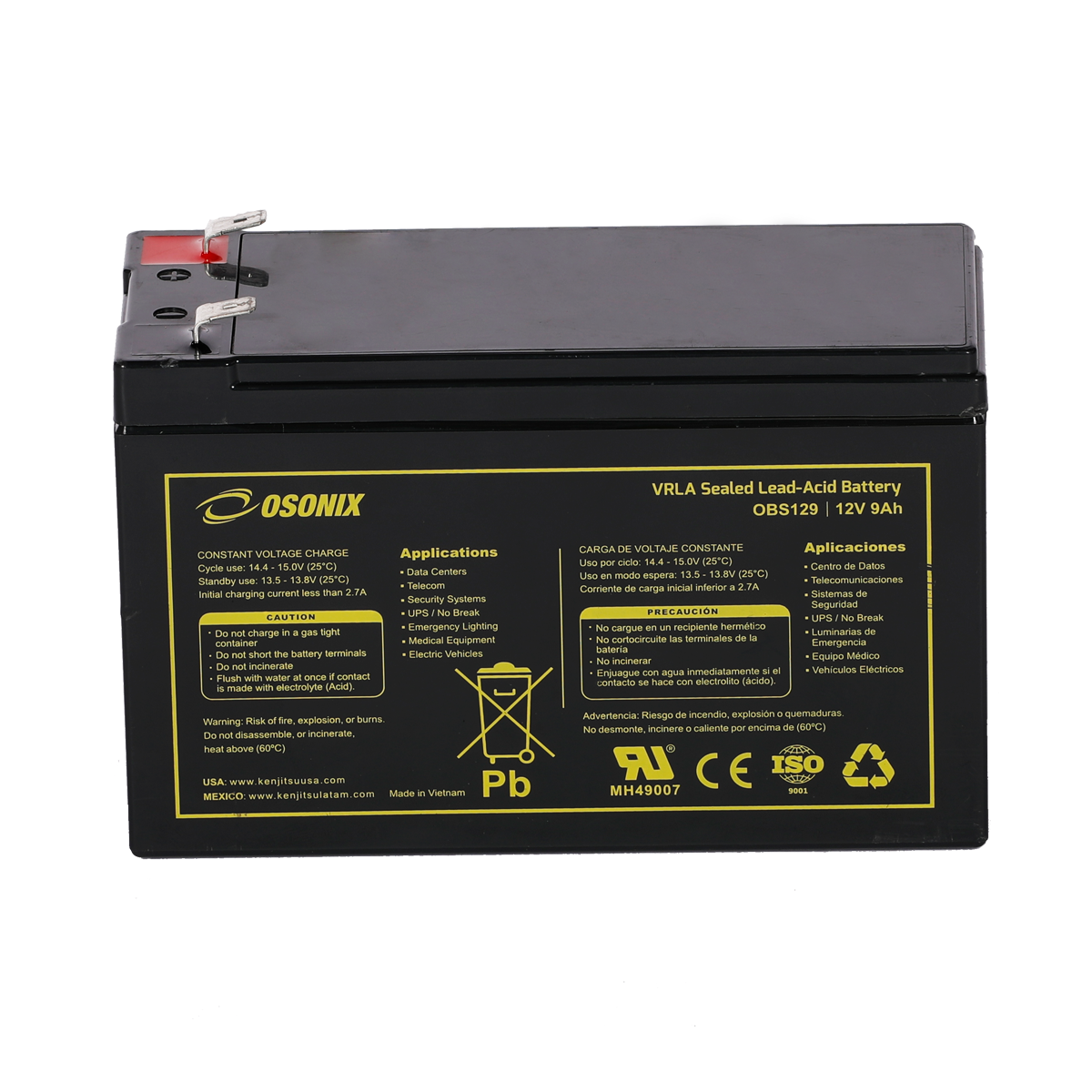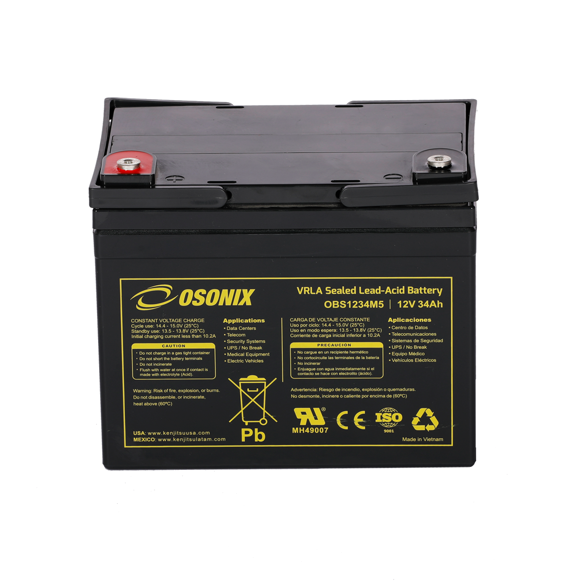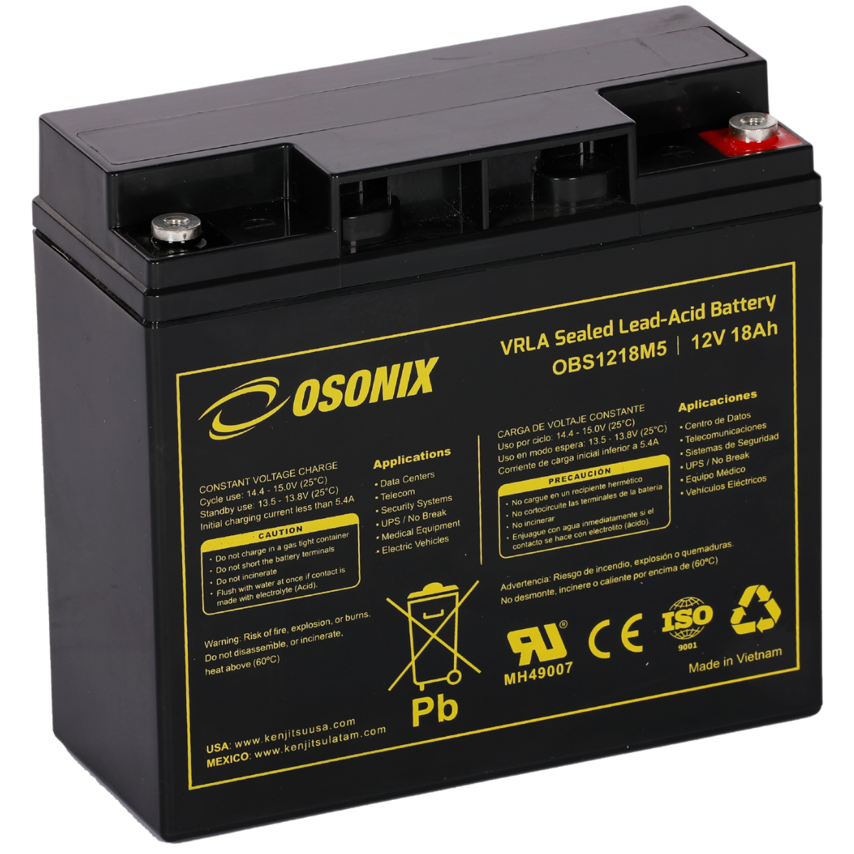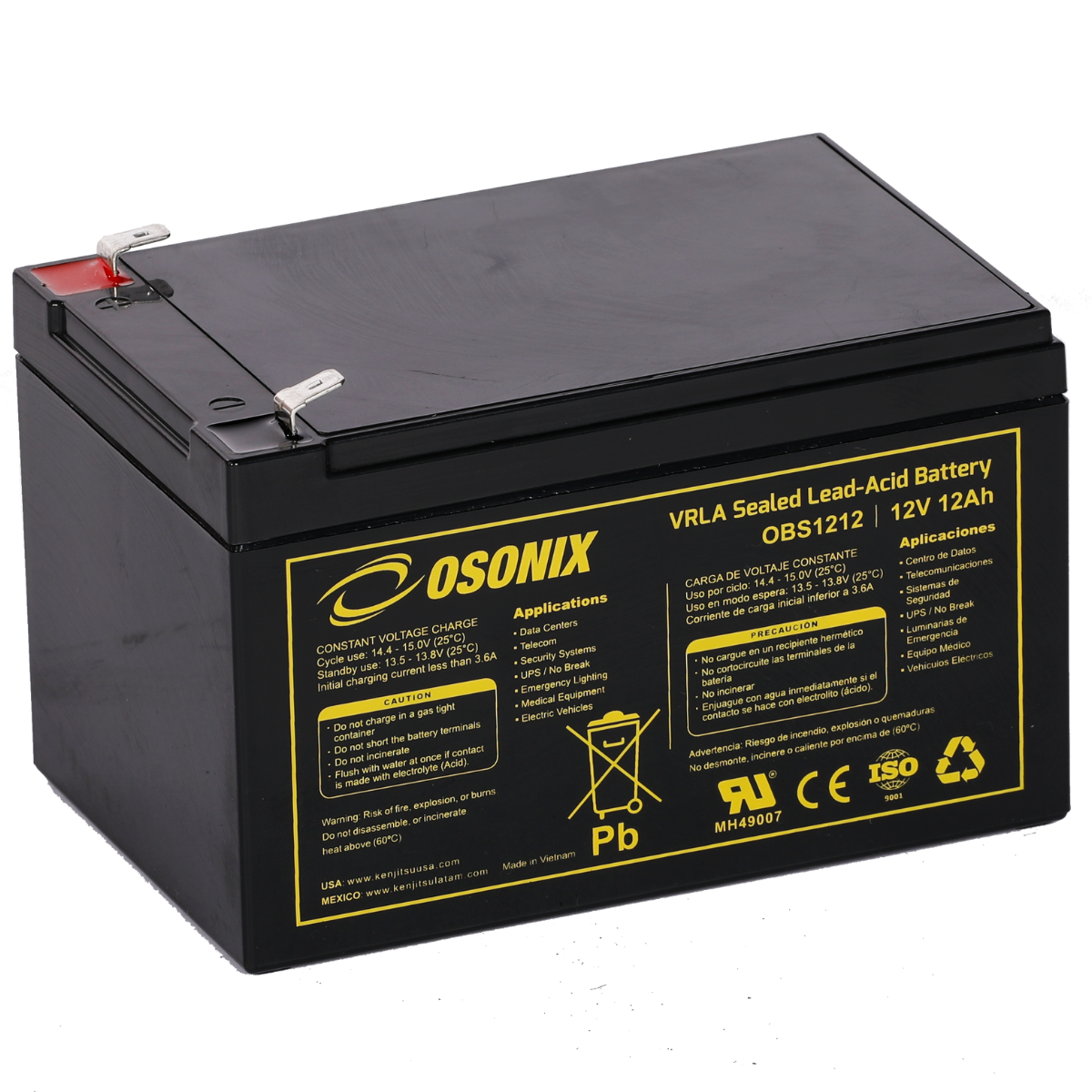 | Voltage (V) | Amp Hour (Ah) | Watts(W) 15min 1.67V/cell | Lenght | Width | Height | Total Height | (Kg) | (Lb) | ||||||
